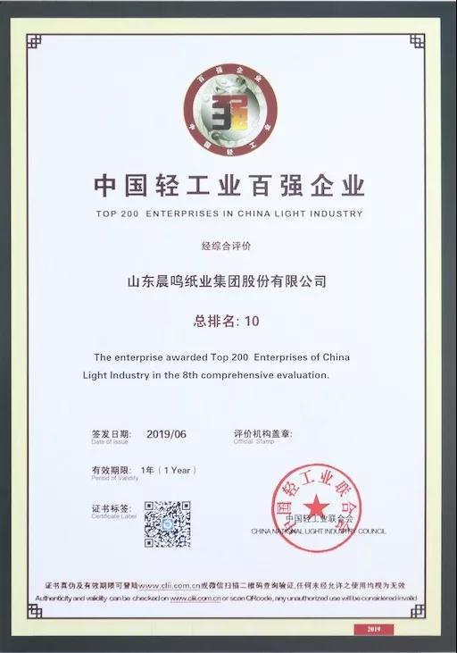 半個(gè)多世紀(jì)的探索和發(fā)展,讓晨鳴集團(tuán)榮譽(yù)滿冠。晨鳴先后榮獲中國(guó)企業(yè)500強(qiáng)、中國(guó)制造業(yè)500強(qiáng)、輕工業(yè)全國(guó)十佳企業(yè)、中國(guó)出口名牌、全國(guó)五一勞動(dòng)獎(jiǎng)狀、中國(guó)企業(yè)管理杰出貢獻(xiàn)獎(jiǎng)、全國(guó)生態(tài)文明建設(shè)十大新聞人物、全國(guó)精神文明建設(shè)先進(jìn)單位、中國(guó)造紙工業(yè)環(huán)境友好企業(yè)、中國(guó)企業(yè)集團(tuán)納稅五百?gòu)?qiáng)、中國(guó)工業(yè)行業(yè)排頭兵企業(yè)、全國(guó)造紙行業(yè)勞動(dòng)關(guān)系和諧企業(yè)、山東省循環(huán)經(jīng)濟(jì)示范單位、低碳山東標(biāo)桿企業(yè)等多項(xiàng)榮譽(yù)稱號(hào)。