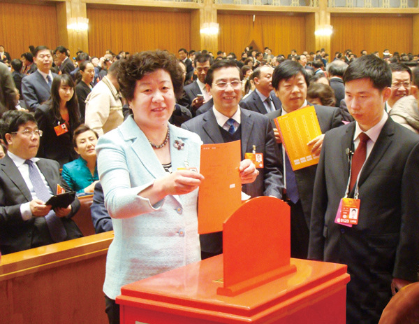 李雪芹在十二屆全國人大一次會議上投下神圣的一票
